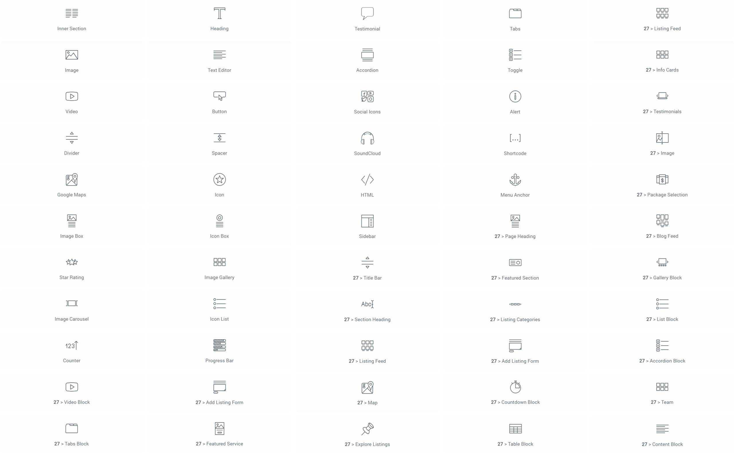 All elementor widgets